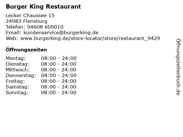 | Öffnungszeiten Burger King Restaurant in Flensburg anzeigen | |