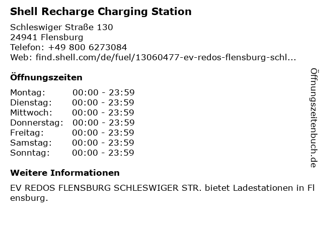 Öffnungszeiten Shell Recharge Charging Station in Flensburg anzeigen