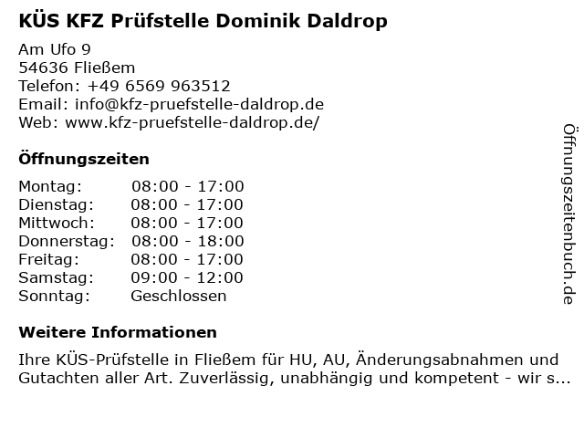 Branchen & Suchbegriffe zu KÜS KFZ Prüfstelle Dominik Daldrop:daldrop, dominik, fahrzeugprüfungen, feinstaubplaketten, gasprüfungen, gebrauchtwagenchecks, gutachten, h-kennzeichen, hauptuntersuchung, hu, hu plakette, ingenieurbüro, kfz, kfz technik, kfz-sachverständige, küs, oldtimerguachten, prüfstelle, schadengutachten, sicherheitsprüfungen, tempo 100 plaketten, tüv, änderungsabnahmen |
