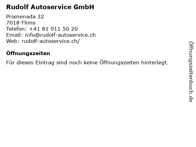 | Öffnungszeiten Rudolf Autoservice GmbH in Flims anzeigen | |