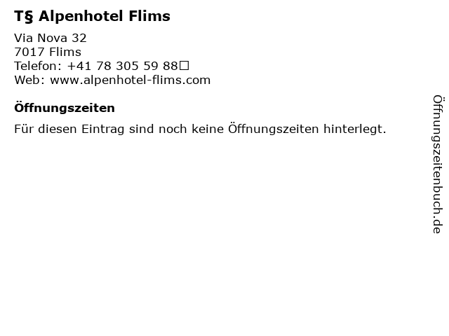 | Öffnungszeiten T§ Alpenhotel Flims in Flims anzeigen | |