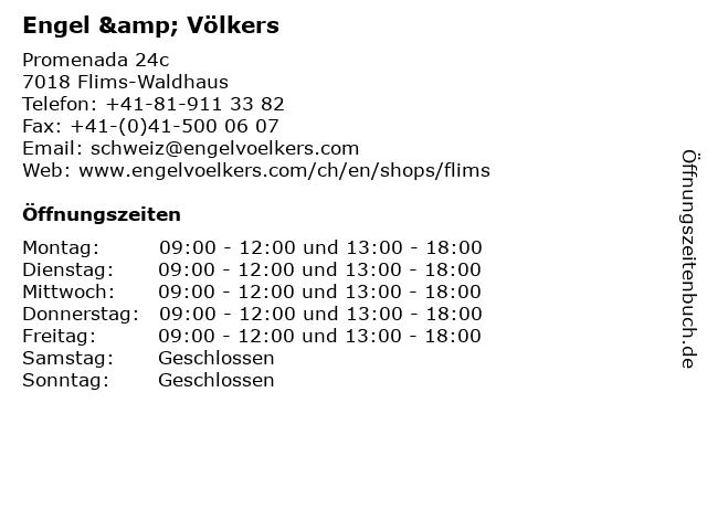 | Öffnungszeiten Engel & Völkers in Flims-Waldhaus anzeigen | |