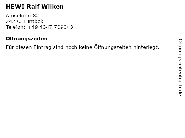 | Öffnungszeiten HEWI Ralf Wilken in Flintbek anzeigen | |