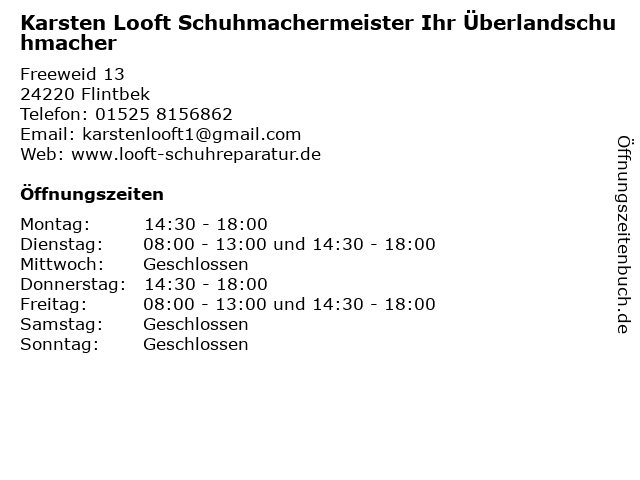 Branchen & Suchbegriffe zu Karsten Looft Schuhmachermeister Ihr Überlandschuhmacher:ihr, karsten, looft, schuhmachermeister, überlandschuhmacher  |