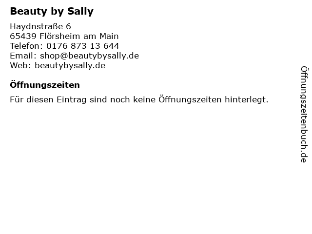 | Öffnungszeiten Beauty by Sally in Flörsheim am Main anzeigen | |