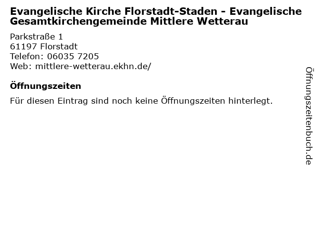 | Evangelische Kirche Florstadt-Staden - Evangelische Gesamtkirchengemeinde Mittlere Wetterau anrufen | |