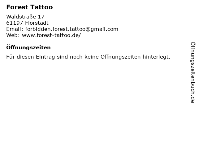 | Öffnungszeiten Forest Tattoo in Florstadt anzeigen | |