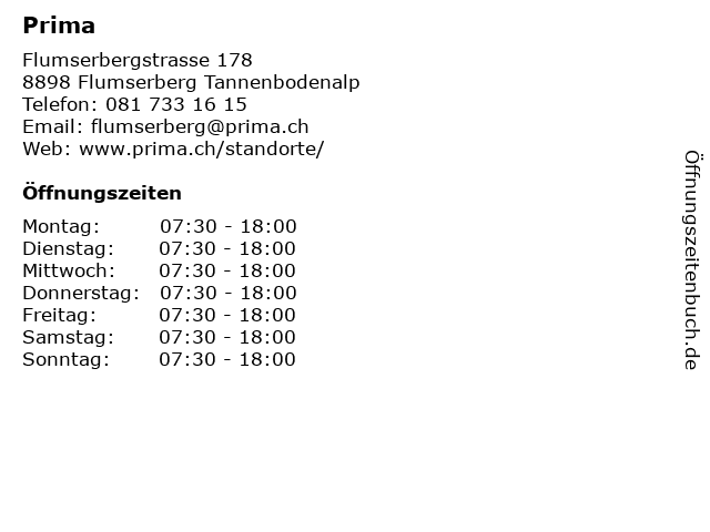 | Öffnungszeiten Prima in Flumserberg Tannenbodenalp anzeigen | |