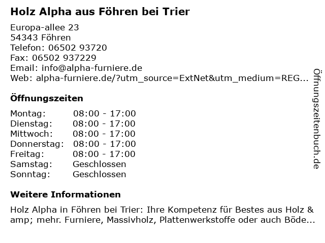 Öffnungszeiten Holz Alpha aus Föhren bei Trier
