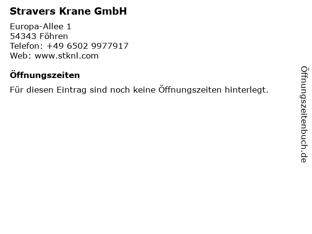 | Öffnungszeiten Stravers Krane GmbH in Föhren anzeigen | |