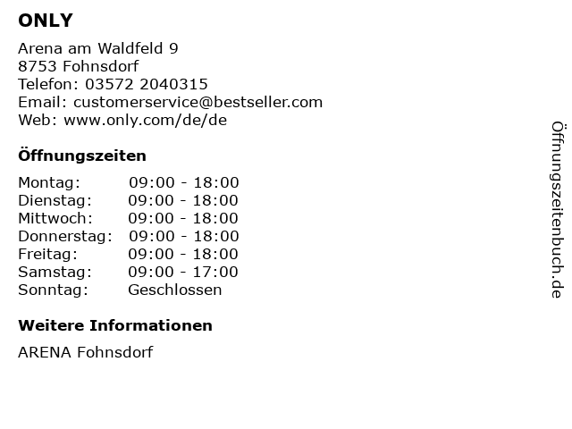 | Öffnungszeiten ONLY in Fohnsdorf anzeigen | |