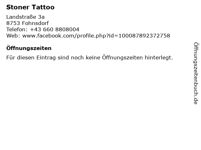 | Telefonnummer Stoner Tattoo in Fohnsdorf (+43 660 8808004) anrufen | |