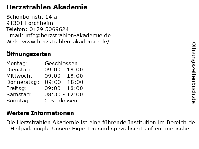 | Öffnungszeiten Herzstrahlen Akademie in Forchheim anzeigen | |