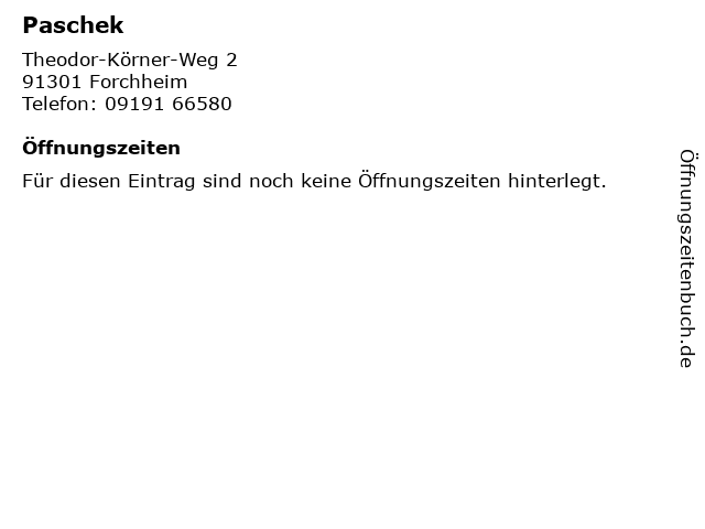 | Öffnungszeiten Paschek in Forchheim anzeigen | |