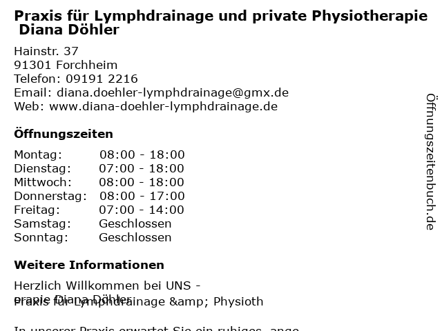Branchen & Suchbegriffe zu Praxis für Lymphdrainage und private Physiotherapie Diana Döhler:diana, döhler, lymphdrainage, massagezentrum, physiotherapie, praxis, private |