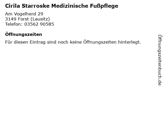 | Cirila Starroske Medizinische Fußpflege anrufen | |
