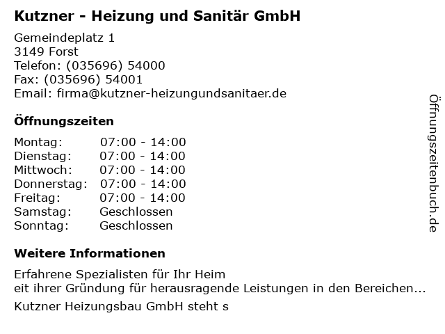 2 Jürgen Neumann Gas-Sanitär-Heizungsbau (Entfernung: 18,67 km) Oßniger Dorfstr. 7, 03058 Neuhausen/Spree 4 Walter-Installation Heizungsbau, Sanitär, Klempnerei (Entfernung: 19,57 km) Madlower Hauptstr. 15, 03050 Cottbus 6 |