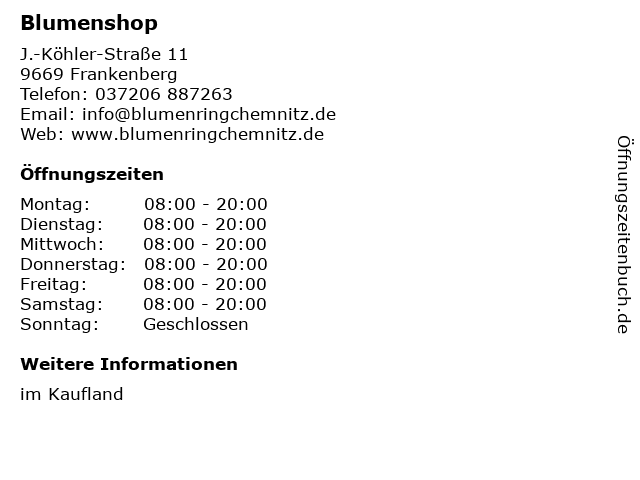 | Öffnungszeiten Blumenshop in Frankenberg anzeigen | |