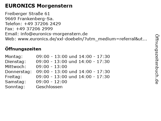 | Öffnungszeiten EURONICS Morgenstern in Frankenberg-Sa. anzeigen | |
