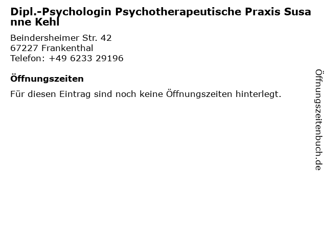 | Dipl.-Psychologin Psychotherapeutische Praxis Susanne Kehl anrufen | |