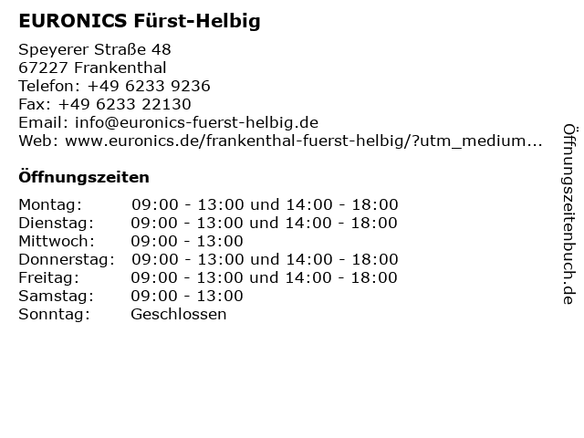 | Öffnungszeiten EURONICS Fürst-Helbig in Frankenthal anzeigen | |
