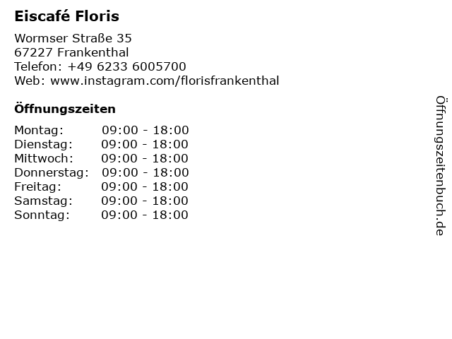 | Öffnungszeiten Eiscafé Floris in Frankenthal anzeigen | |