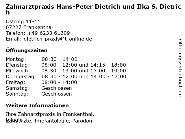Branchen & Suchbegriffe zu Zahnarztpraxis Hans-Peter Dietrich und Ilka S. Dietrich:akupunktur, dietrich, hans, hypnose, ilka, implantologie, parodontologie, peter, s., zahnarzt, zahnarztpraxis, zahnarztpraxis frankenthal, zahnarztpraxis in der nähe, zahnmedizin, zahnärzte |