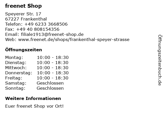 freenet Shop in Frankenthal: Telefonnummer, Öffnungszeiten und Adresse