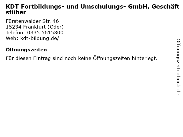 | KDT Fortbildungs- und Umschulungs- GmbH, Geschäftsfüher anrufen | |