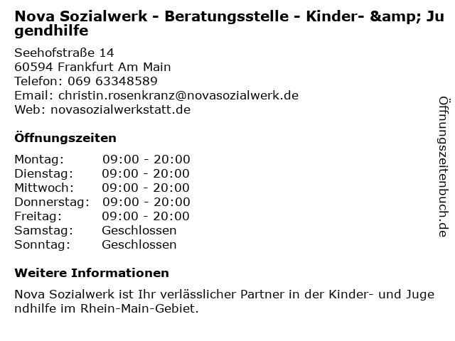 Branchen & Suchbegriffe zu Nova Sozialwerk - Beratungsstelle - Kinder- & Jugendhilfe:arbeitsvermittler, beratungsstelle, jugendhilfe, kinder, kreditberatung, lebenscoaching, nova, psychologische beratung, sozialwerk |