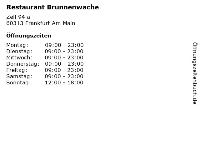 | Öffnungszeiten Restaurant Brunnenwache in Frankfurt Am Main anzeigen | |