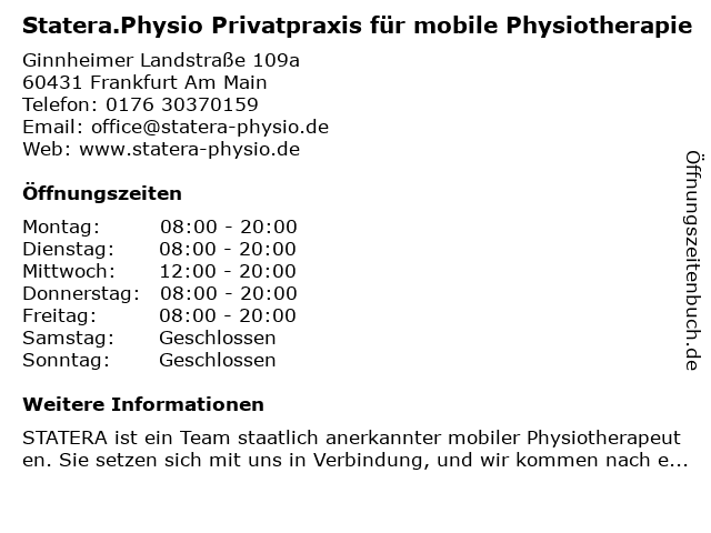 Branchen & Suchbegriffe zu Statera.Physio Privatpraxis für mobile Physiotherapie:alternative heilmethoden, mobile, osteopathie, physiotherapie, privatpraxis, schmerztherapie, statera.physio, wellnesszentrum |