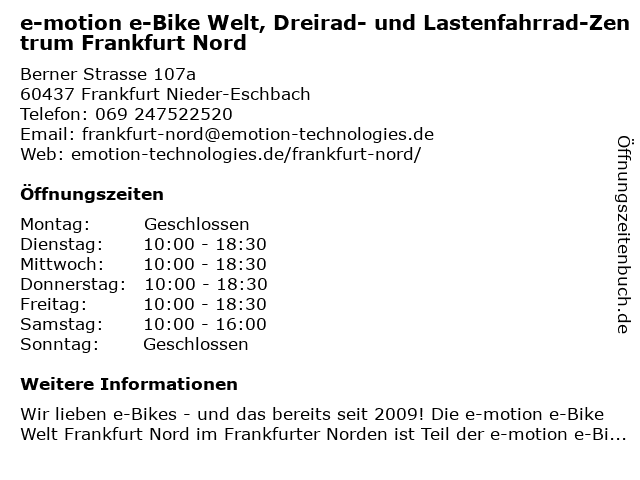 Branchen & Suchbegriffe zu e-motion e-Bike Welt, Dreirad- und Lastenfahrrad-Zentrum Frankfurt Nord:bike, dreirad, lastenfahrrad, motion, nord, welt, zentrum |