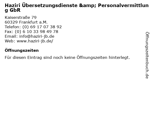 | Haziri Übersetzungsdienste & Personalvermittlung GbR anrufen | |