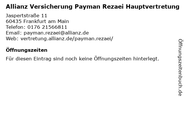 | Allianz Versicherung Payman Rezaei Hauptvertretung anrufen | |