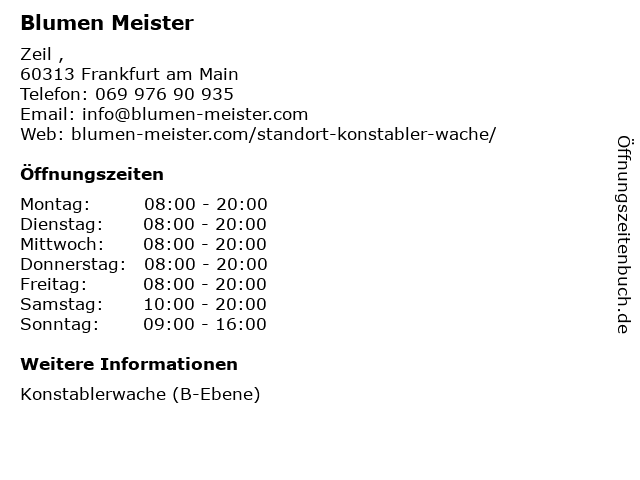 Öffnungszeiten Blumen Meister in Frankfurt am Main anzeigen | |