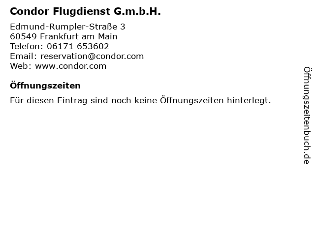 Branchen & Suchbegriffe zu Condor Flugdienst G.m.b.H.:condor, flugdienst, g.m.b.h., reiseveranstalter |