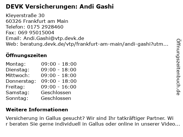 2 DEVK Versicherung: Hakan Yavuz (Berater*in ausgeschieden) (Entfernung: 0,01 km) Kleyerstr. 30, 60326 Frankfurt 4 DEVK Versicherung Sebastian Heil Gebietsleiter (Entfernung: 0,57 km) Stephensonstraße 1, 60326 Frankfurt 6 DEVK Versicherung: Arno Kolb (Berater*in ausgeschieden) (Entfernung: 1,11 km) Adam-riese-str. 11-13, 60327 Frankfurt am Main |