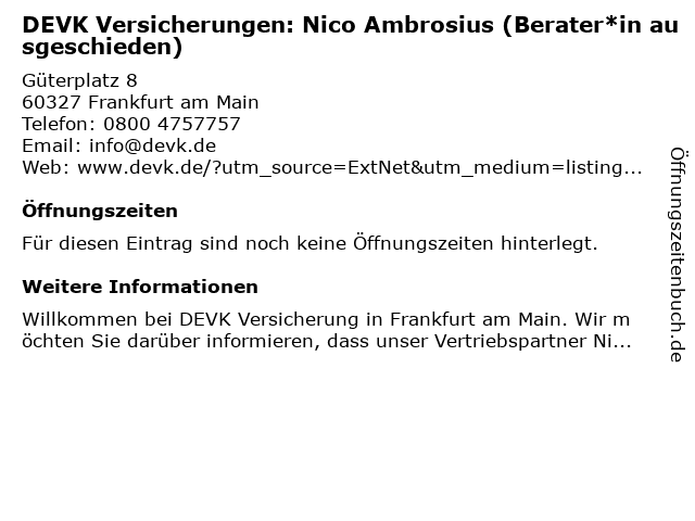 | DEVK Versicherungen: Nico Ambrosius (Berater*in ausgeschieden) anrufen | |
