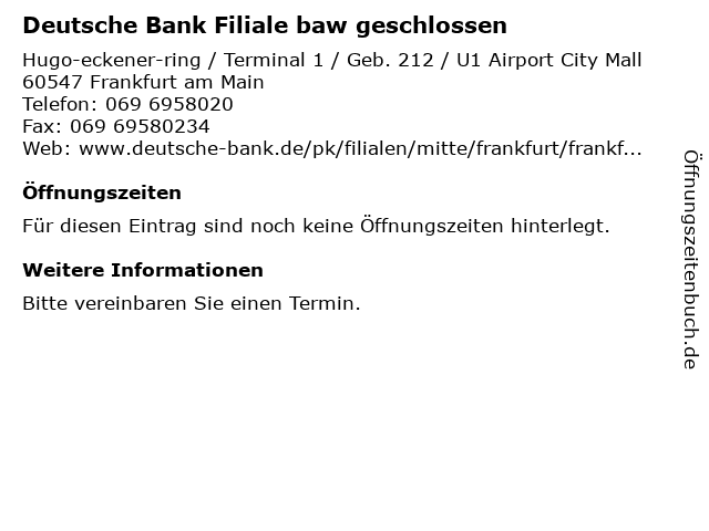 | Deutsche Bank Filiale baw geschlossen anrufen | |