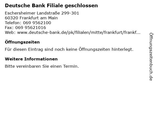 | Deutsche Bank Filiale geschlossen anrufen | |