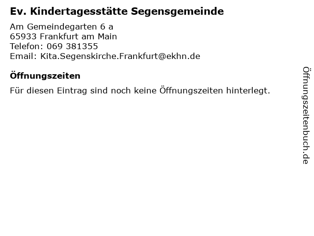 | Ev. Kindertagesstätte Segensgemeinde anrufen | |