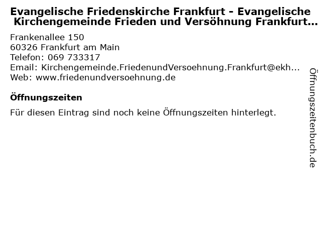 | Evangelische Friedenskirche Frankfurt - Evangelische Kirchengemeinde Frieden und Versöhnung Frankfurt/Main anrufen | |