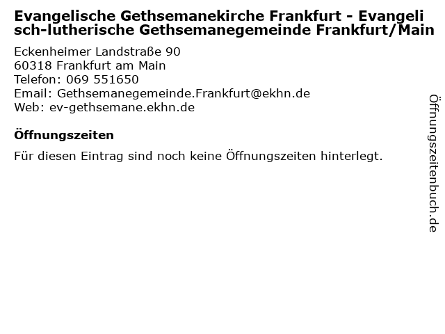 | Evangelische Gethsemanekirche Frankfurt - Evangelisch-lutherische Gethsemanegemeinde Frankfurt/Main anrufen | |