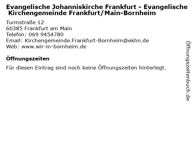 | Evangelische Johanniskirche Frankfurt - Evangelische Kirchengemeinde Frankfurt/Main-Bornheim anrufen | |