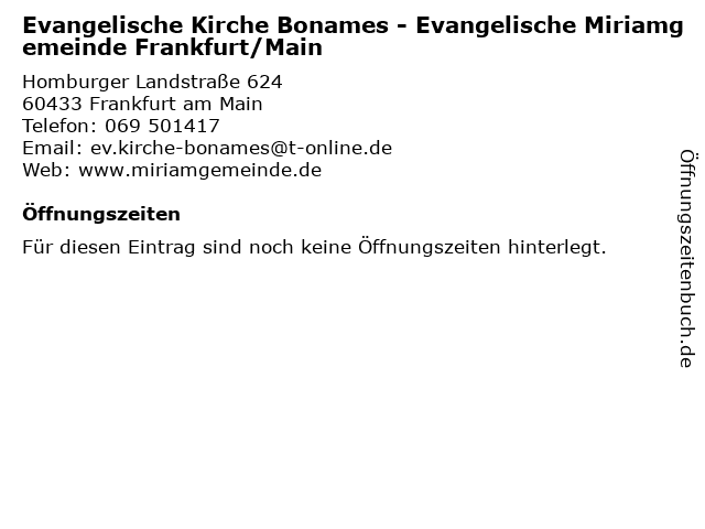 | Evangelische Kirche Bonames - Evangelische Miriamgemeinde Frankfurt/Main anrufen | |
