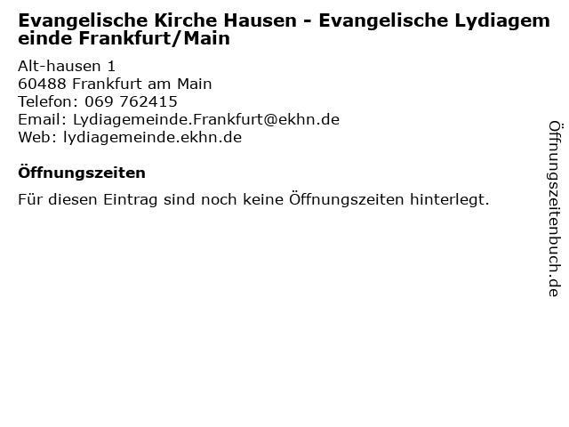| Evangelische Kirche Hausen - Evangelische Lydiagemeinde Frankfurt/Main anrufen | |