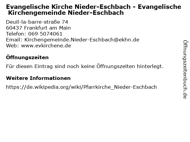 | Evangelische Kirche Nieder-Eschbach - Evangelische Kirchengemeinde Nieder-Eschbach anrufen | |