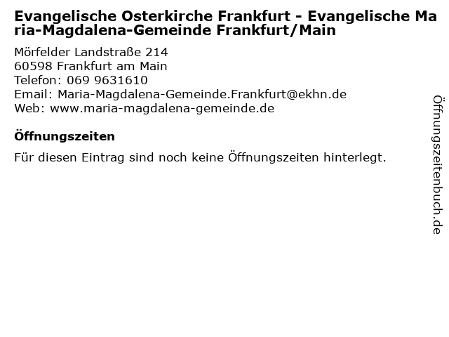 | Evangelische Osterkirche Frankfurt - Evangelische Maria-Magdalena-Gemeinde Frankfurt/Main anrufen | |