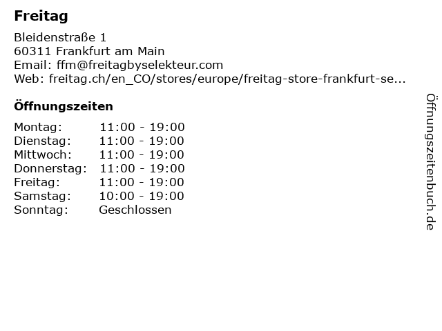 | Adresse Freitag in Frankfurt am Main anzeigen |